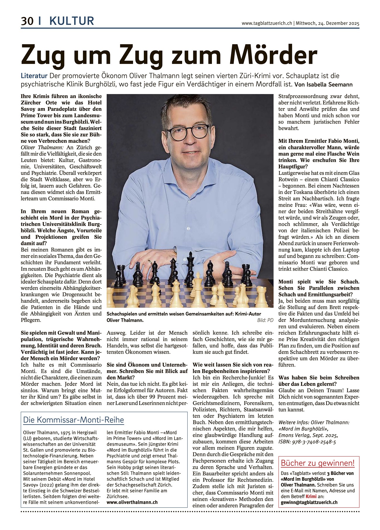 Zürcher Tagblatt 24. Dezember 2025 Zürcher Tagblatt Artikel im Zürcher Tagblatt am 24. Dezember 2025 Download Artikel als PDF >