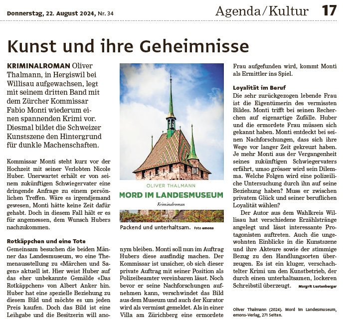 Seetaler Bote Buchempfehlung August 2024 Seetaler Bote Buchempfehlung August 2024Artikel im Seetaler Bote 22. August 2024 Download Artikel als PDF >