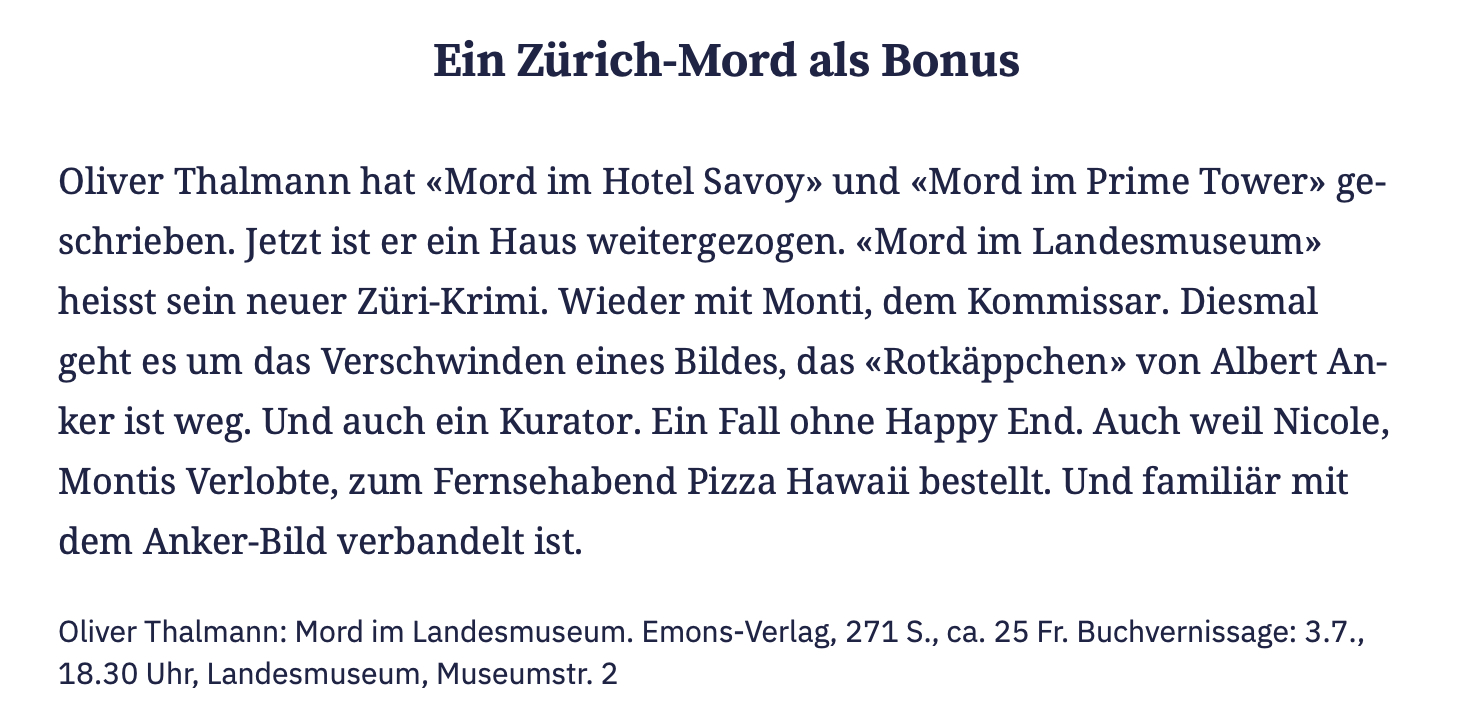 Tagesanzeiger Buchempfehlung Sommer 2024